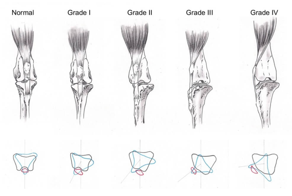 앞선 포스팅에서 말씀드린 것과 같이 강아지 슬개골 탈구의 단계는 1기에서 4기로 나누어집니다. 1기와 2기는 초기 단계로 슬개골이 일시적으로 탈구되어 주변 근육을 키우고 관리만 잘해주면 생활하는데 큰 무리가 없는 단계입니다.
